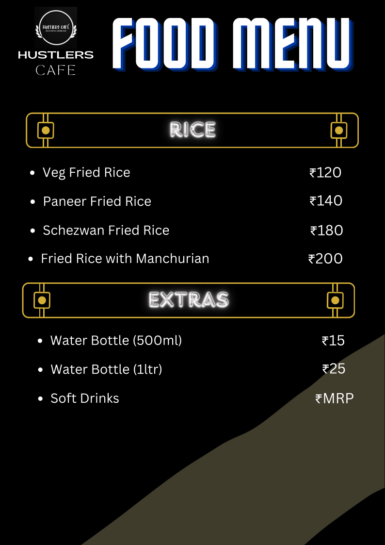 If you're in the mood for pizza, Hustlers Café has you covered! Try their classic Margretta Pizza for ₹140 or the colorful Onion Tomato Capsicum Pizza (OTC) at ₹160. Those who enjoy a touch of heartiness can go for the Paneer Tikka Pizza at ₹180, which bursts with flavors in every bite. With options that cater to both vegetarian preferences and adventurous eaters, there's something for everyone here.